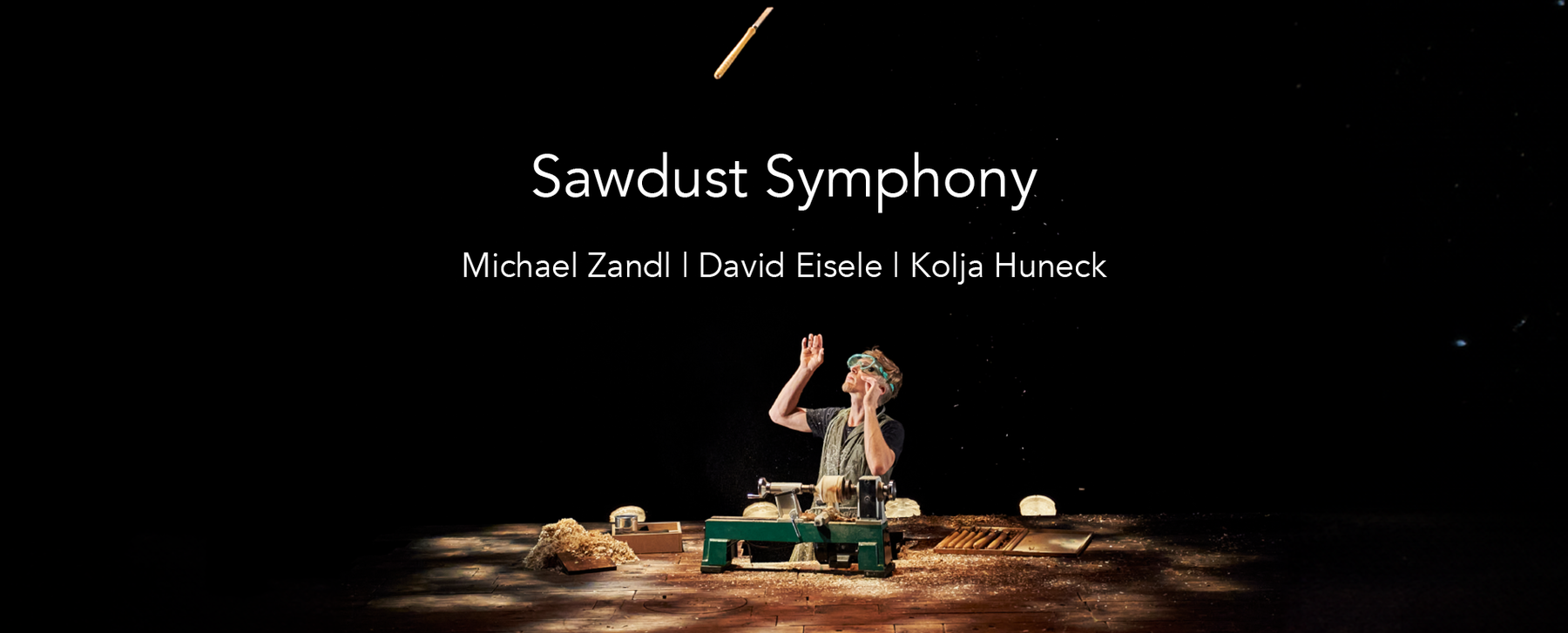 Internationell cirkus. Nyhuggen ved. Objektmanipulation. Maskiner, lim, sågspån. Tre besatta skapare och ett scenrum som förutsätter... ja, mer scenrum än vad vi har. Mycket mer.